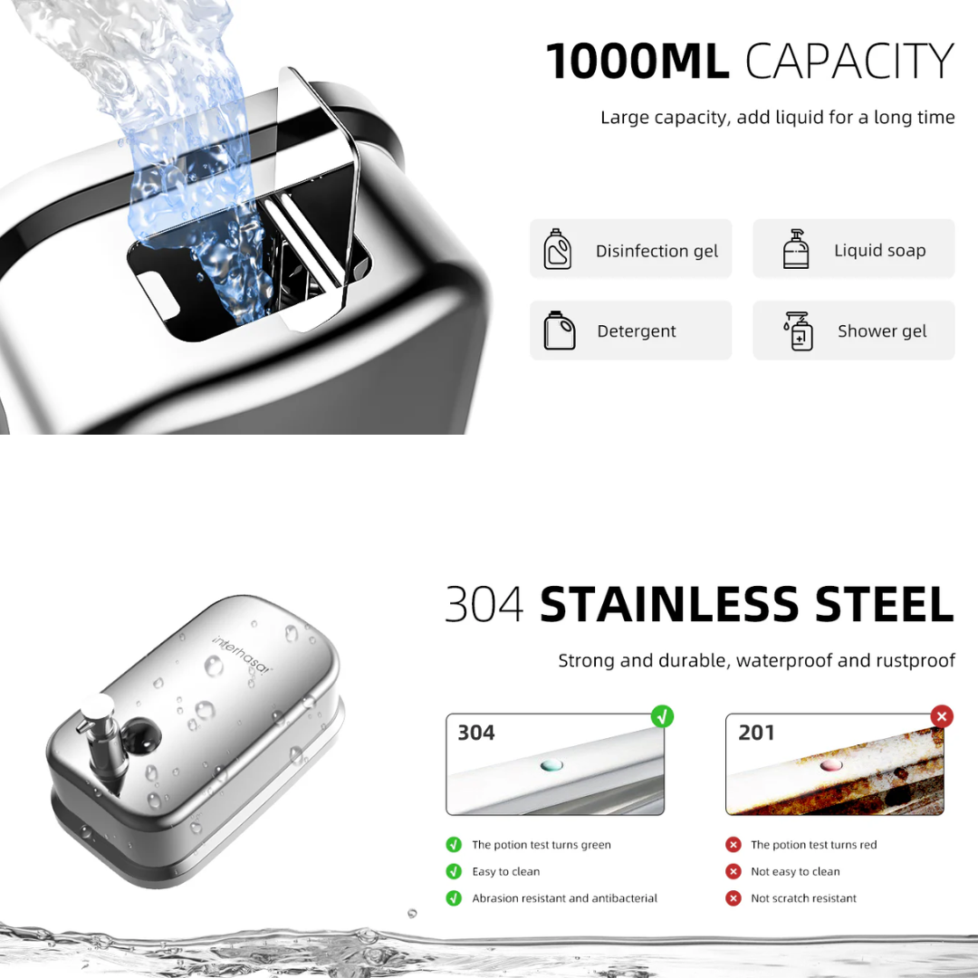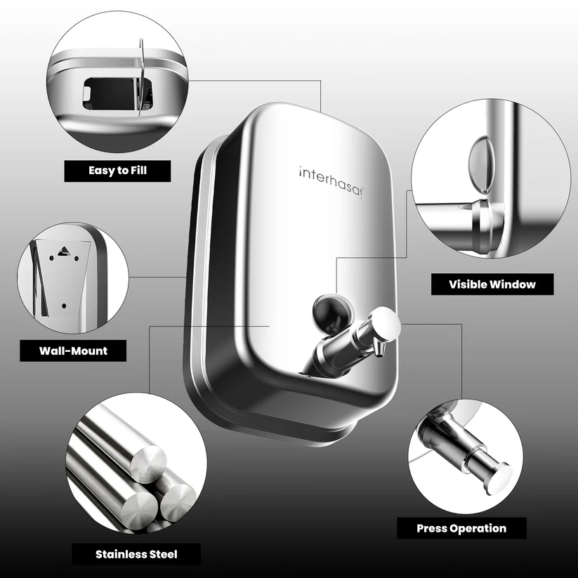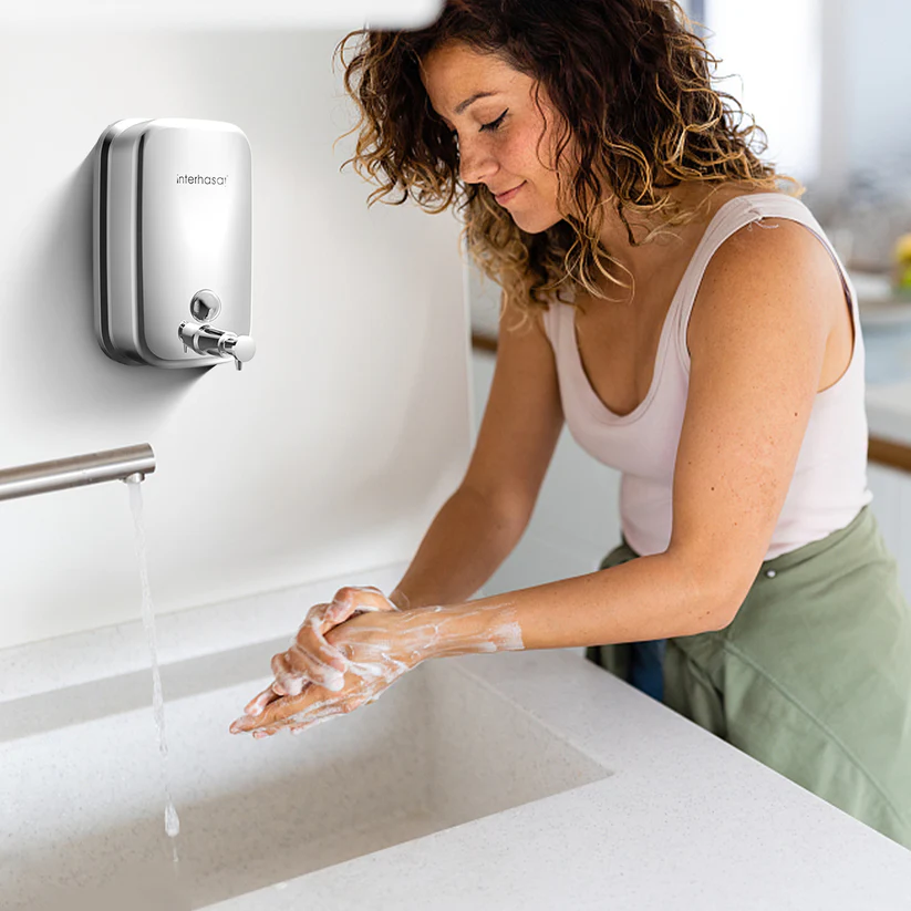 Bình xịt xà phòng nhấn đơn treo tường 500ml INTERHASA HSD-F8008 nhựa ABS cao cấp, chống nước