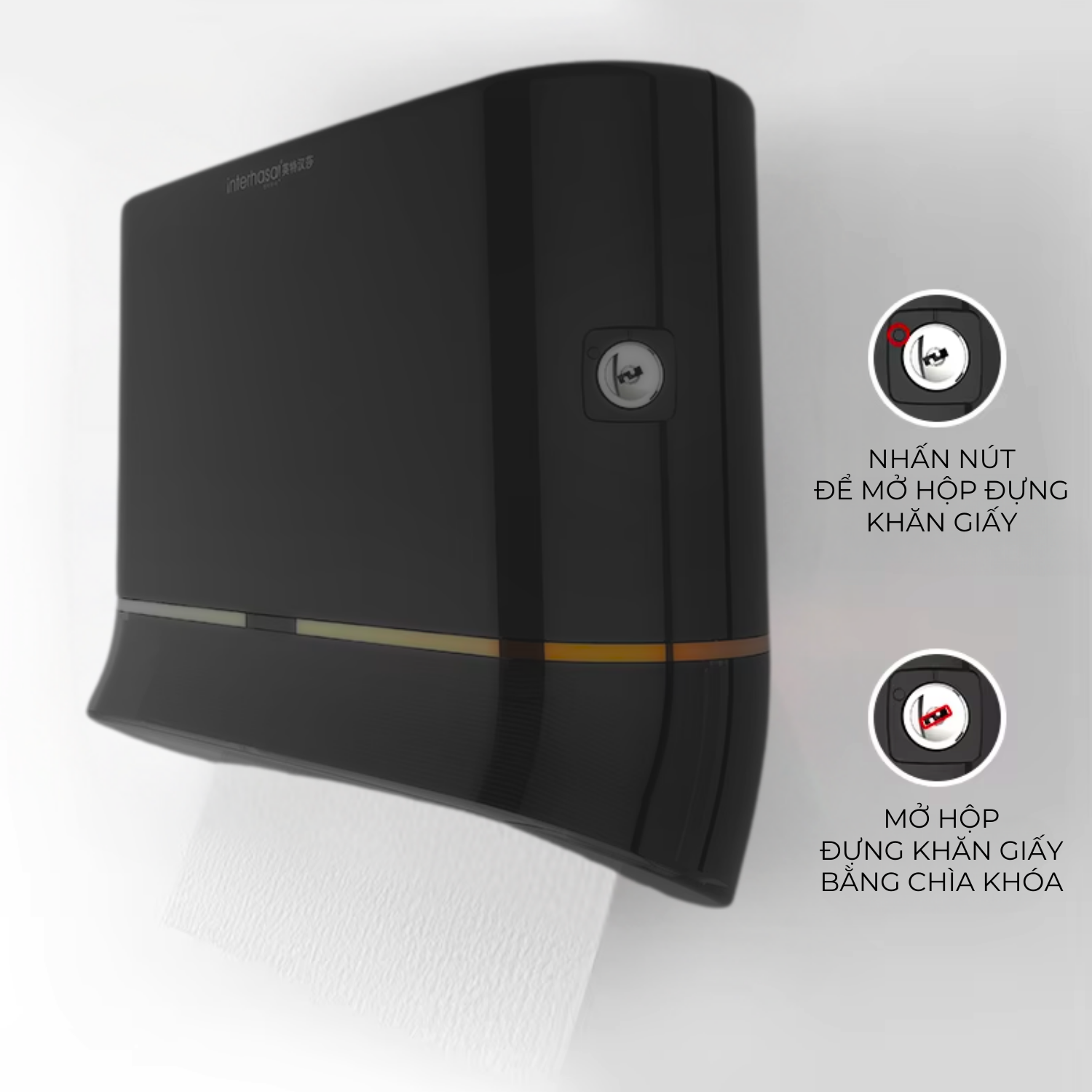 Hộp đựng giấy lau tay INTERHASA HSD-E6002 (MBL), treo tường, nhựa ABS, chống nước, chứa 200 tờ