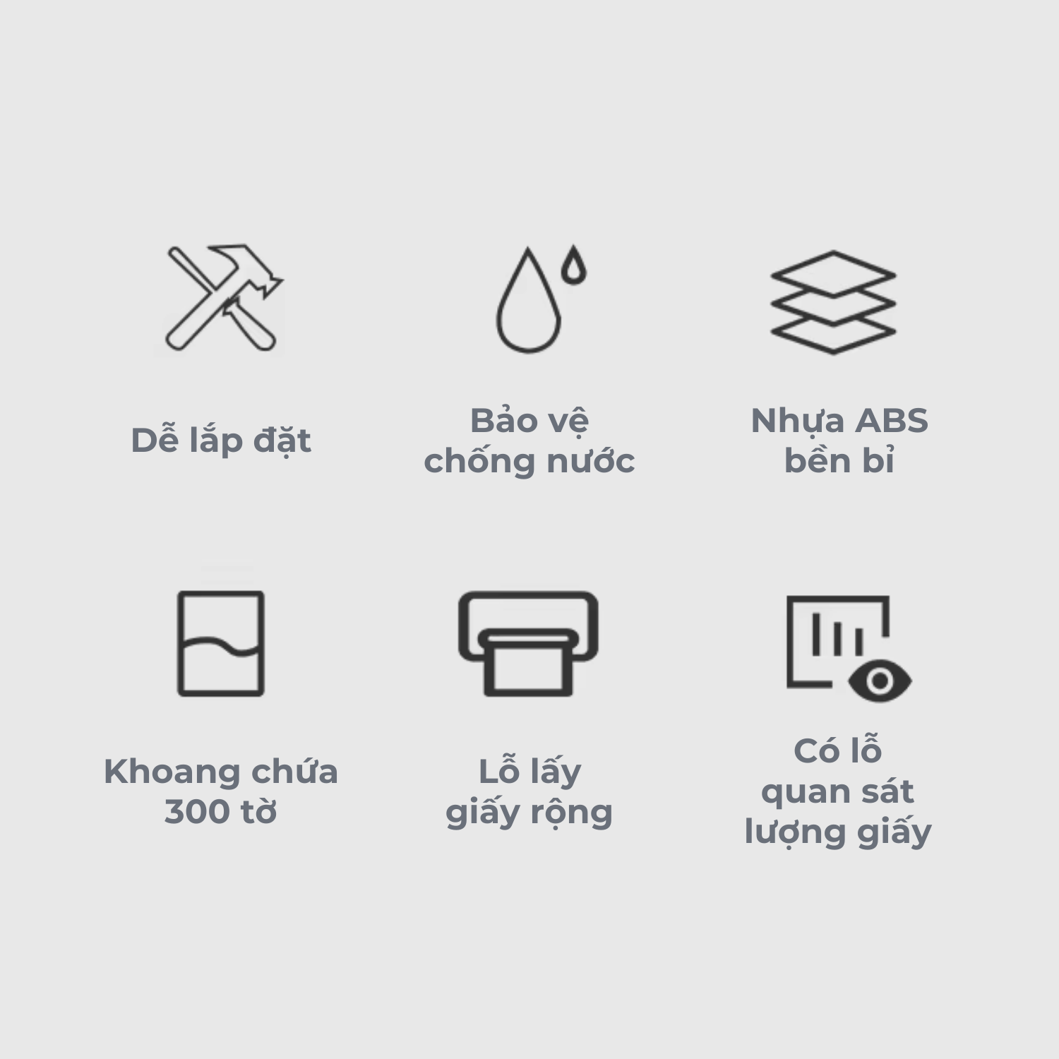 Hộp đựng giấy lau tay treo tường INTERHASA HSD-E6008 (WH) 200 tờ giấy, nhựa ABS cao cấp, chống nước