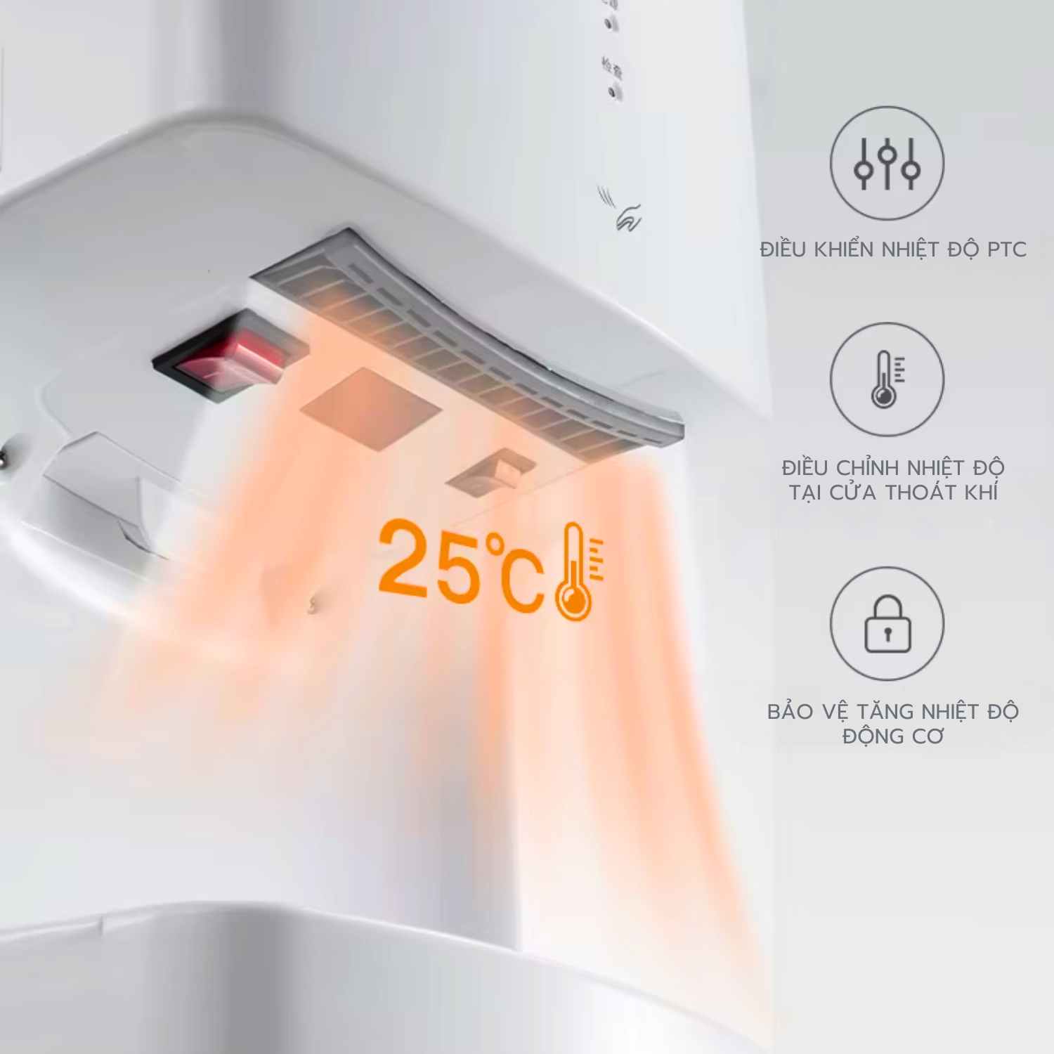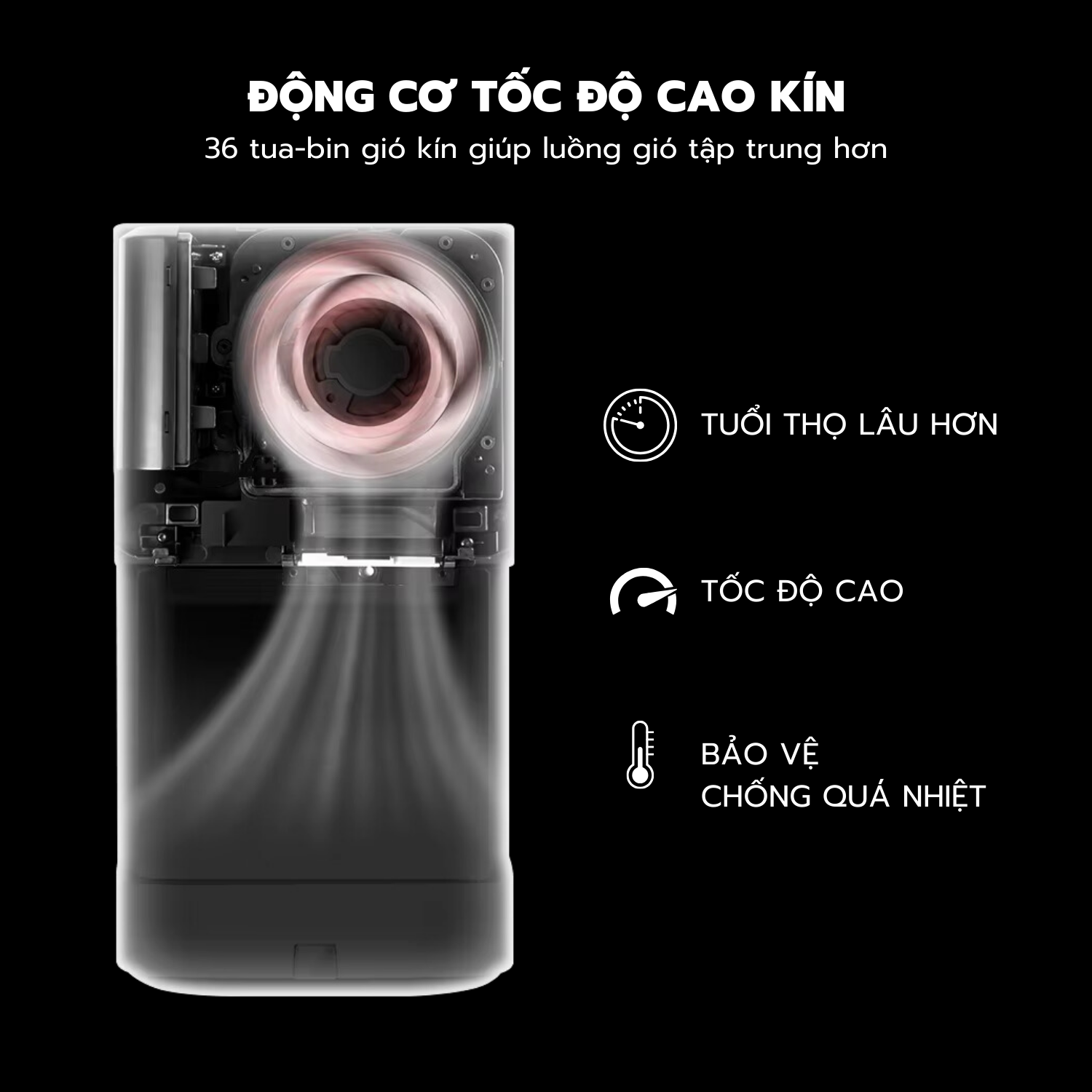 + Trễ tắt máy: Tự động tắt sau 2 giây khi không còn phát hiện tay