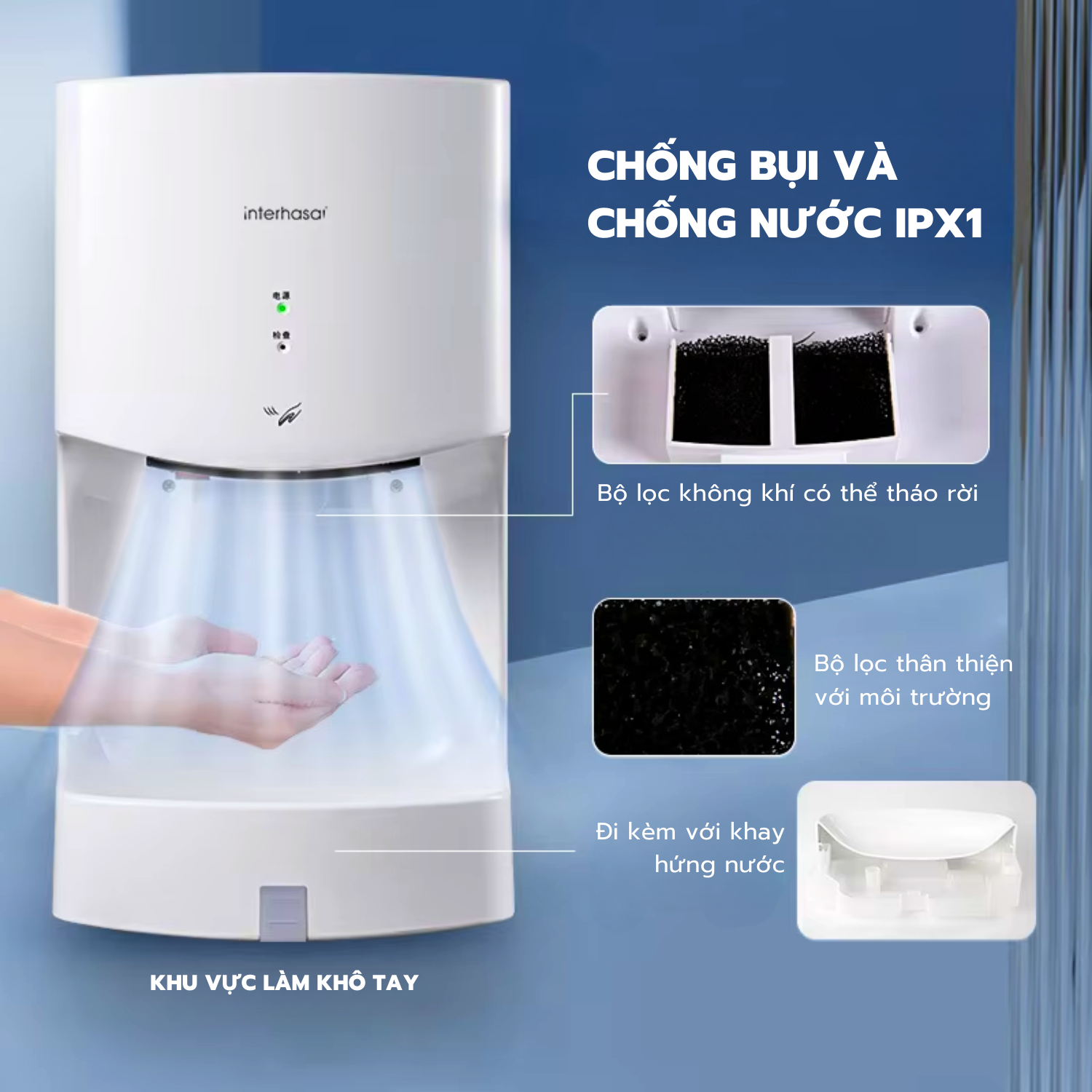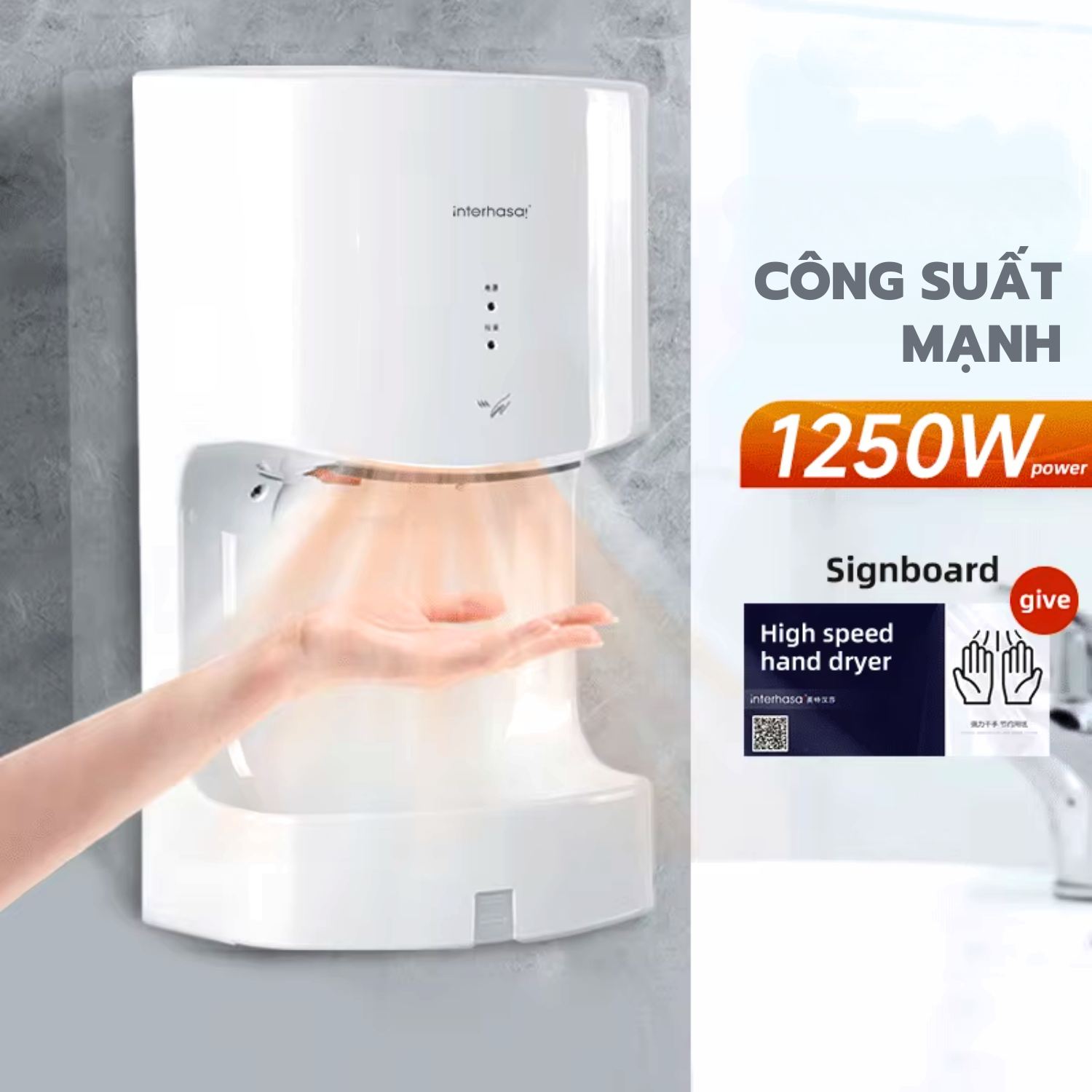 Máy sấy tay tự động tốc độ cao 1250W INTERHASA HSD-A3800 cảm biến hồng ngoại, lắp đặt treo tường